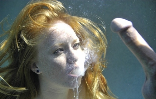 Y ella se aprovecha bien del tema para darse un buen polvo en la piscina. Toda la escena se desarrolla en apnea (para ella, no para él), con pausas para respirar por supuesto, aunque parece abusar finalmente porque ha ensayado el aguantar bajo el agua. Con grandes planos de su coñito casi rasurado del todo, sólo algunos pelos rojos subsisten; vamos, que no podemos tener ninguna duda de que no es teñida :)